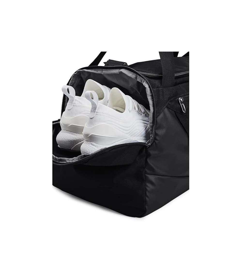 Además, la bolsa Under Armour Undeniable 5.0 1369223-001 incluye un bolsillo organizador frontal grande con cremallera y puntos de fijación de correas Molle, para que puedas llevar todo lo que necesitas de manera cómoda y segura. Sus dimensiones totales son de 12.1 pulgadas de ancho x 11.4 pulgadas de alto x 24.6 pulgadas de largo, lo que la hace ideal para transportar tus pertenencias de forma práctica.